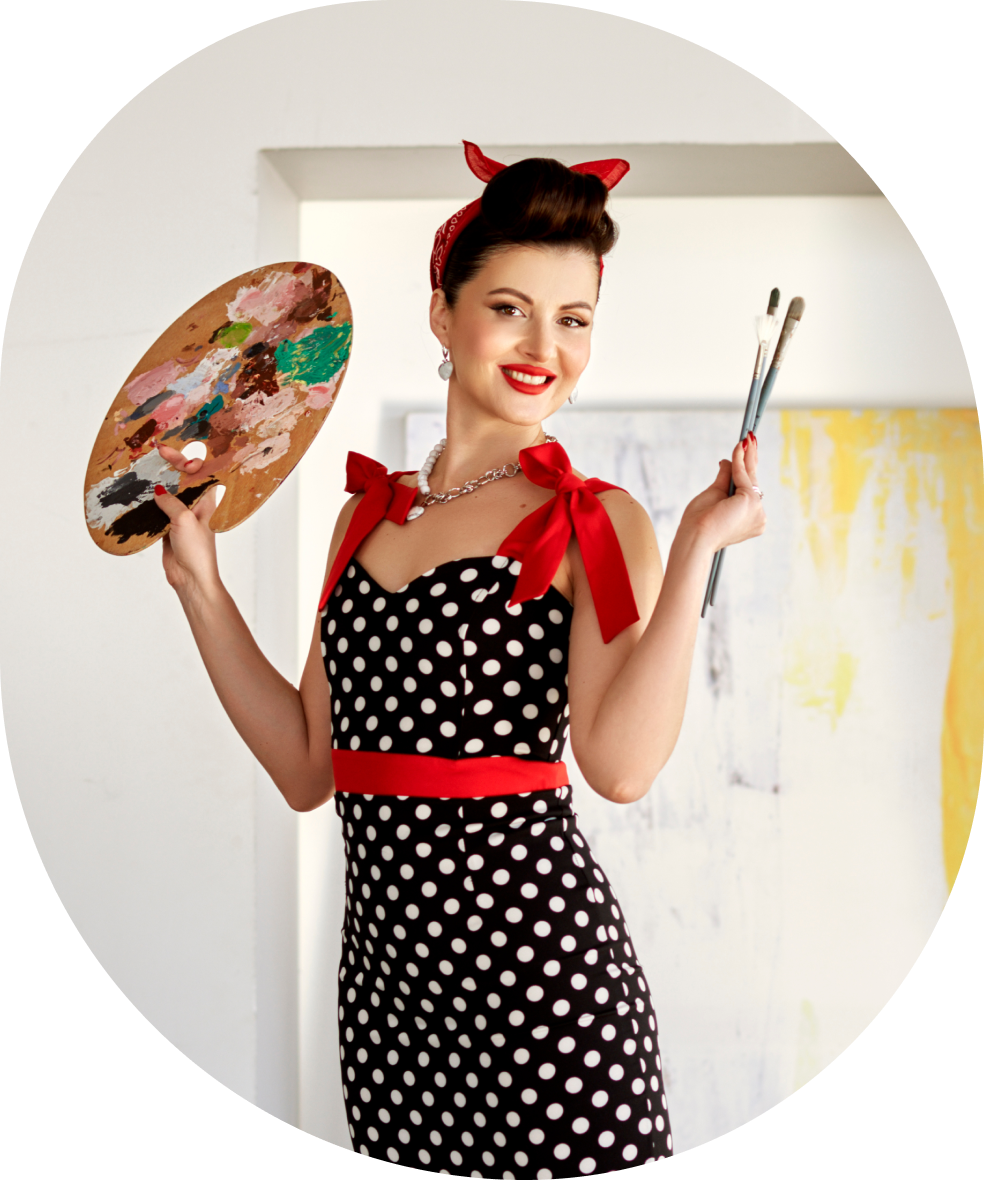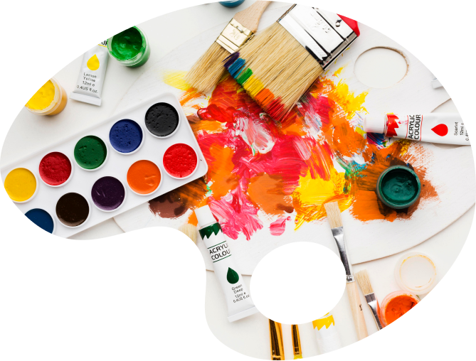 Референсы на выбор ⬤Холст ⬤Краски ⬤Кисти ⬤Палитра ⬤Набор средств защиты ⬤Инструкция ⬤Аудио-техника арт-терапии